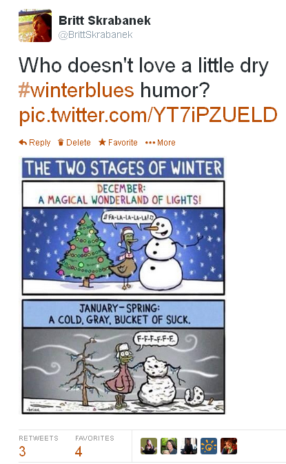It wasn’t so negative Britt – at least you can still come up with positive tips 🙂 I think dogs are one of the answers – yes, you have to go out in the horrible weather, but you also get to experience the things you wouldn’t see if you were holed up inside and get some exercise at the same time! Otherwise, I’m definitely in agreement that you use the cold weather as an excuse to stay inside and create.